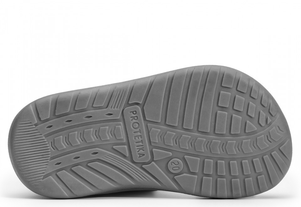 Sportos barefoot őszi cipő bőr és PROTEX membár anyagokból. A PROTEX membrán hatékonyan védi a lábat az esőtől és a nedvességtől a változékony időjáráskor is. A felsőrész kiváló minőségű textil és sima, valamint hasított bőr kombinációjából készült szürke és acélkék árnyalatban.